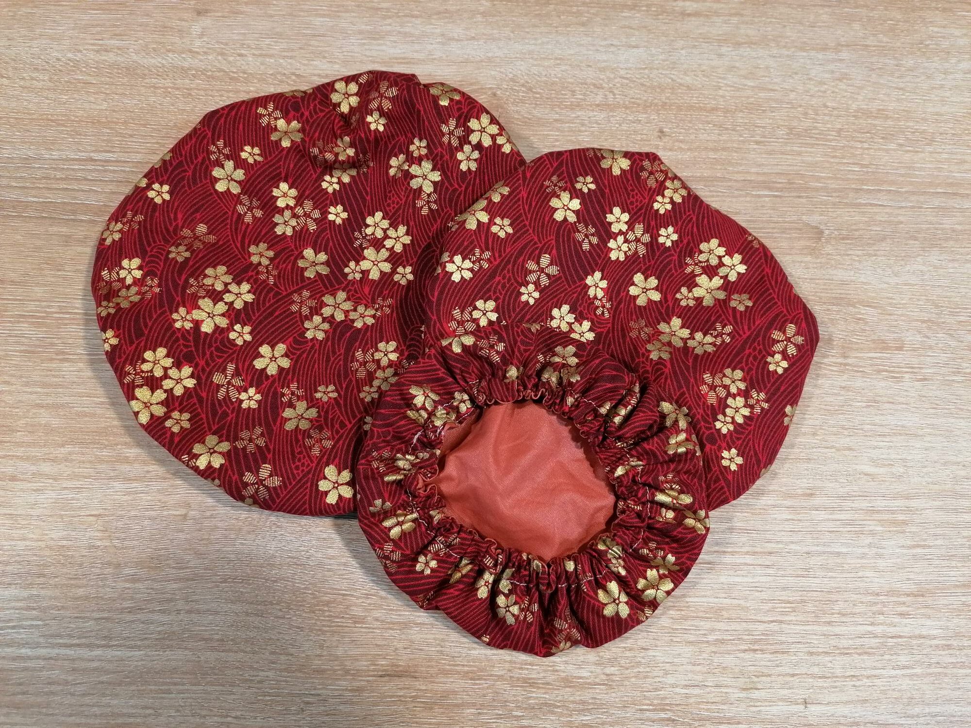 Lot de 3 charlottes alimentaires – motif Fleurs japon or rouge
