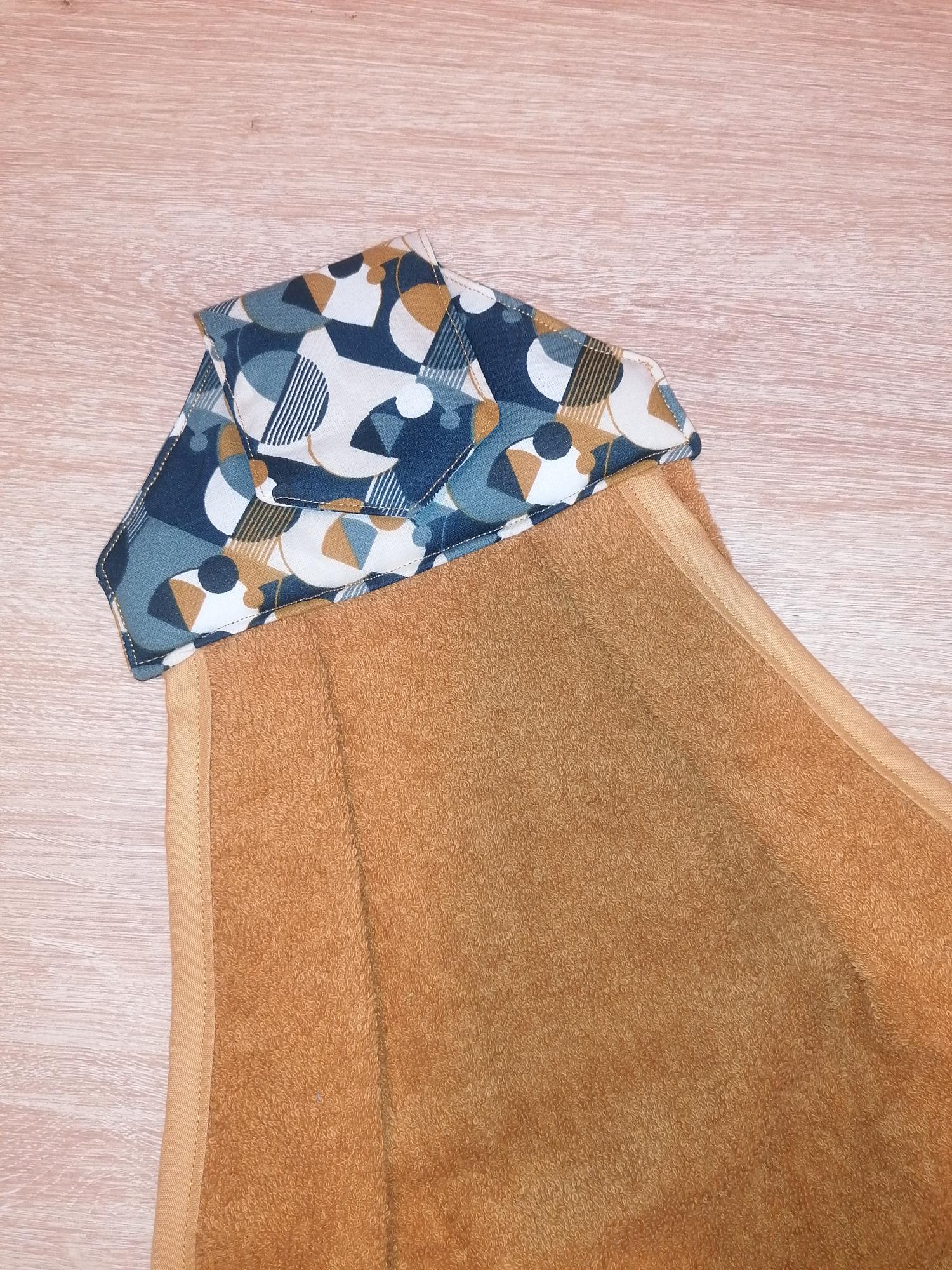 Essuie mains – Géométrie bleu moutarde / éponge moutarde