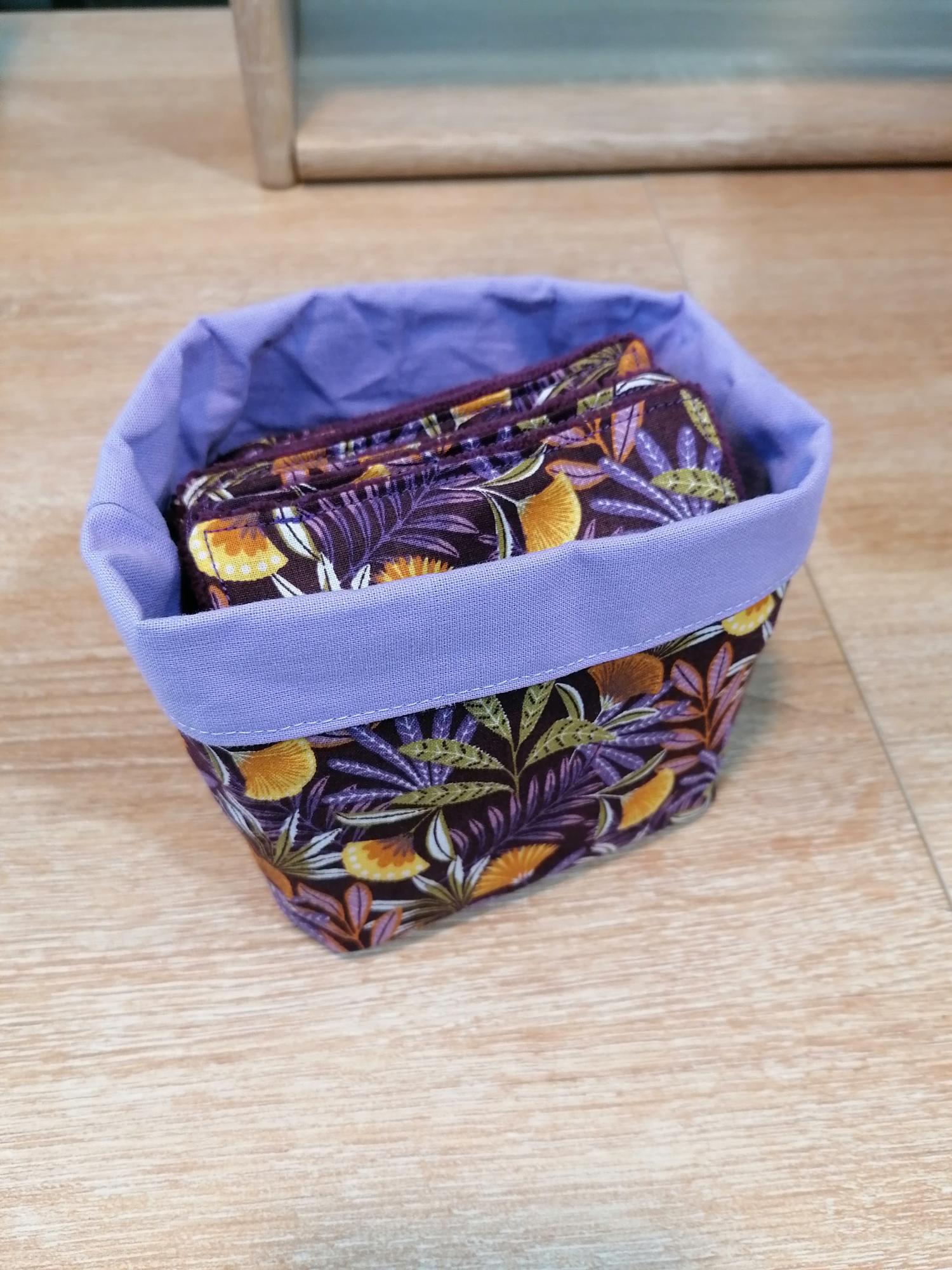 Panier 10 lingettes – Feuillages violet / violet
