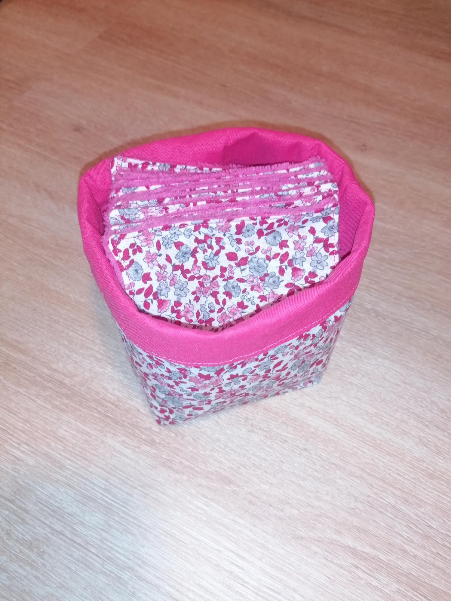 Panier comprenant 10 lingettes – Motif Fleurs fuchsia/ fuchsia