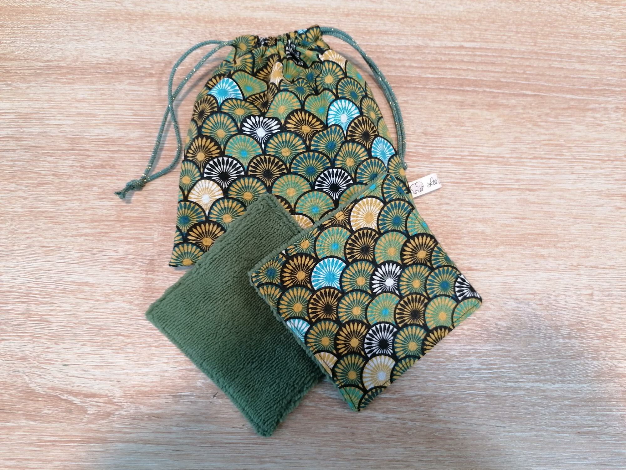 Pochon 7 lingettes – Eventail Sonia vert / Vert
