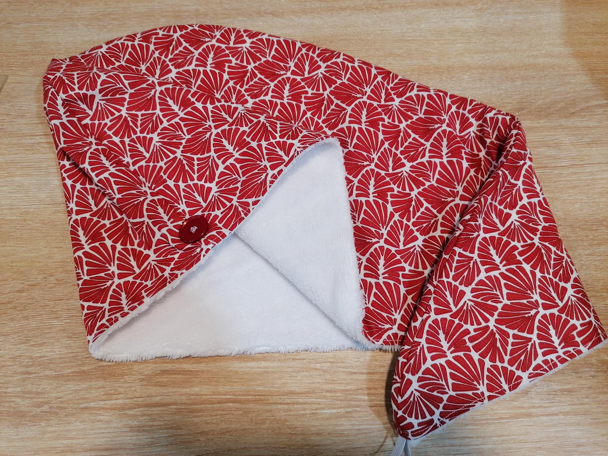 Serviette de cheveux – Antibes rouge / éponge bambou blanc