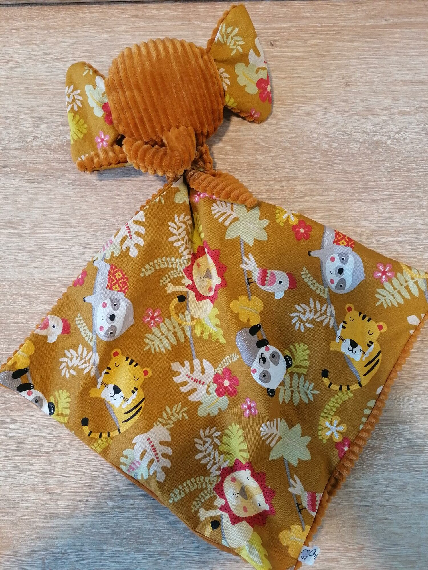 Il est en coton d’un côté et en velours souple de l’autre, tout doux pour les petites mains de bébé.