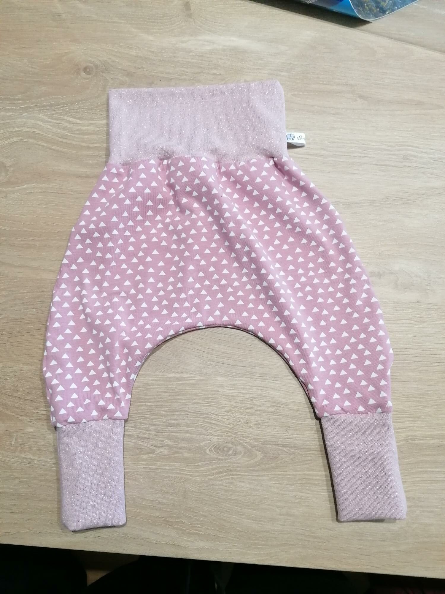 Sarouel 12 mois – Triangles / rose paillette