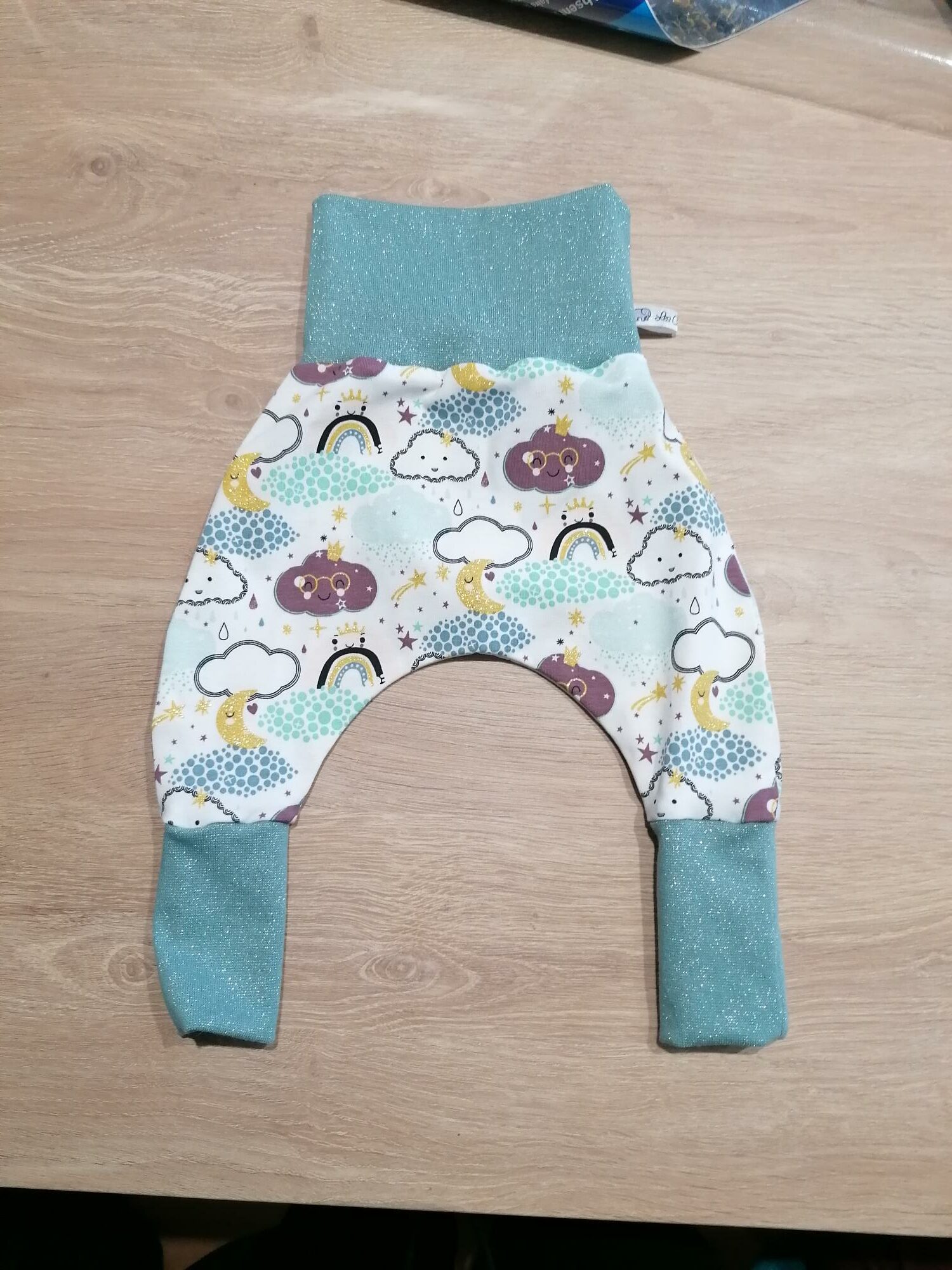 Sarouel 3 mois – Nuages / Vert eau paillette