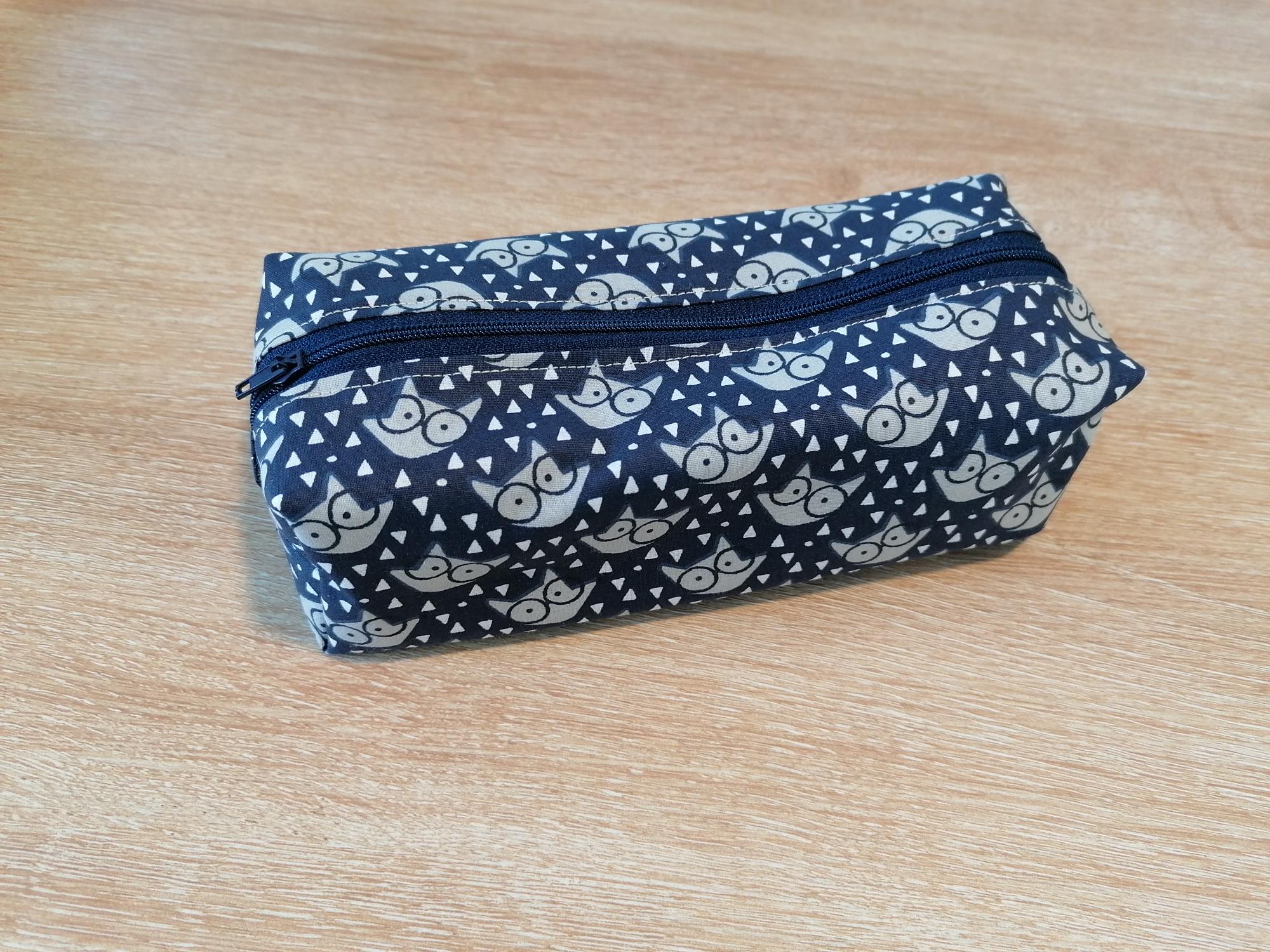 Trousse d’école – Motif Foxy bleu marine – Tissu intérieur enduit