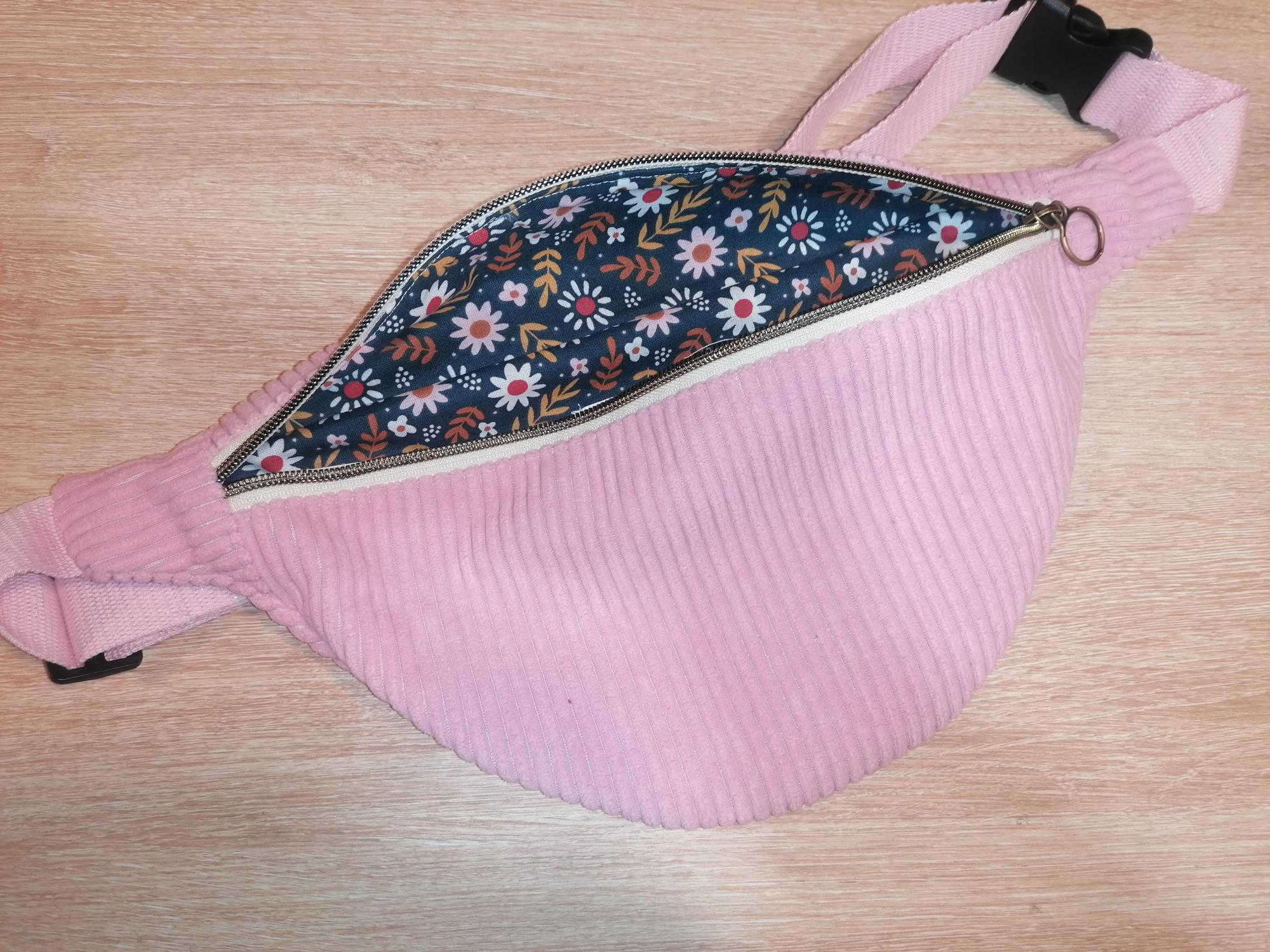 Banane basique – Velours rose clair / Fleurs bleu marine