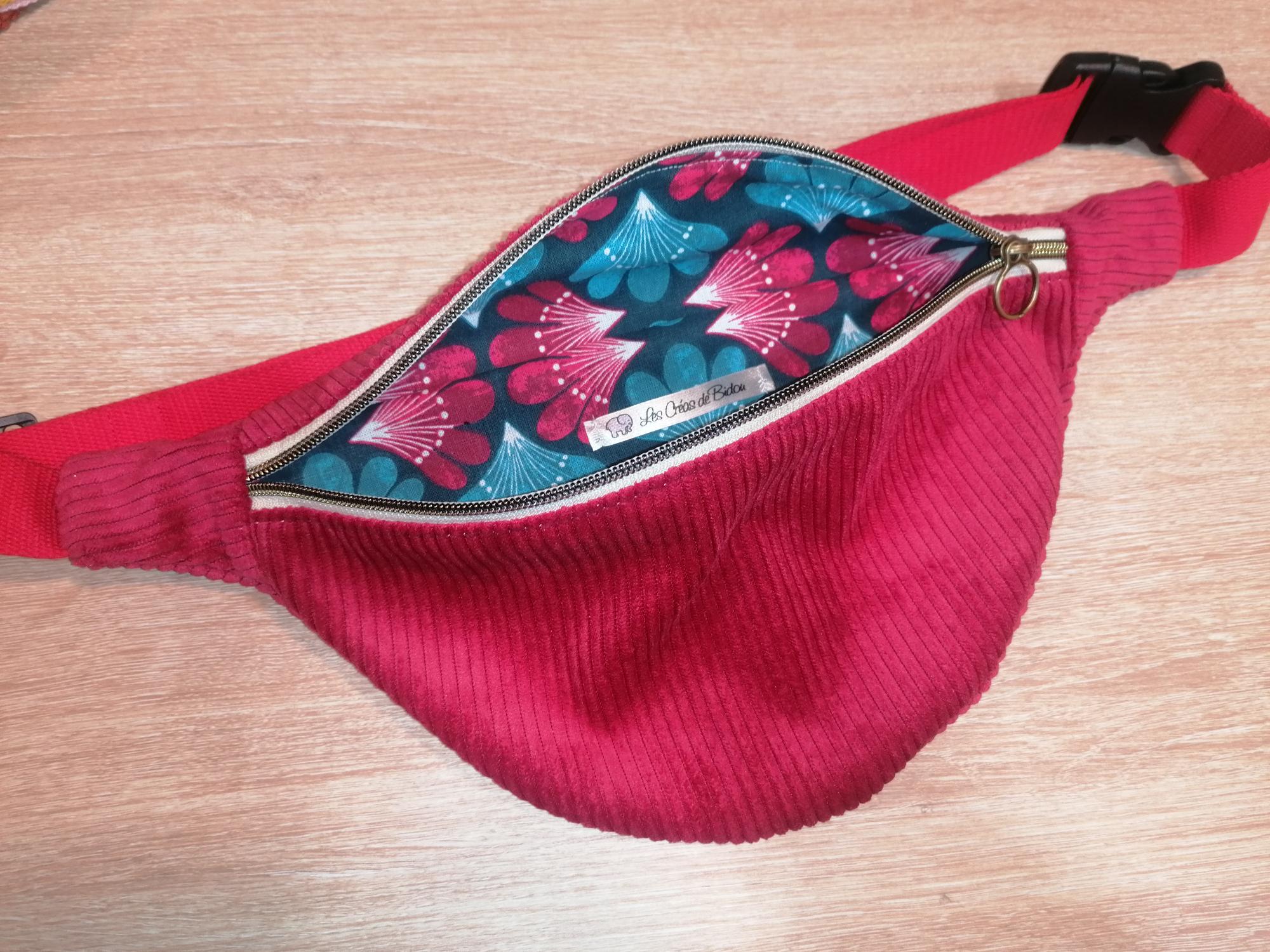 Banane basique – Velours rouge / Feuilles bleu rouge – anses rouge