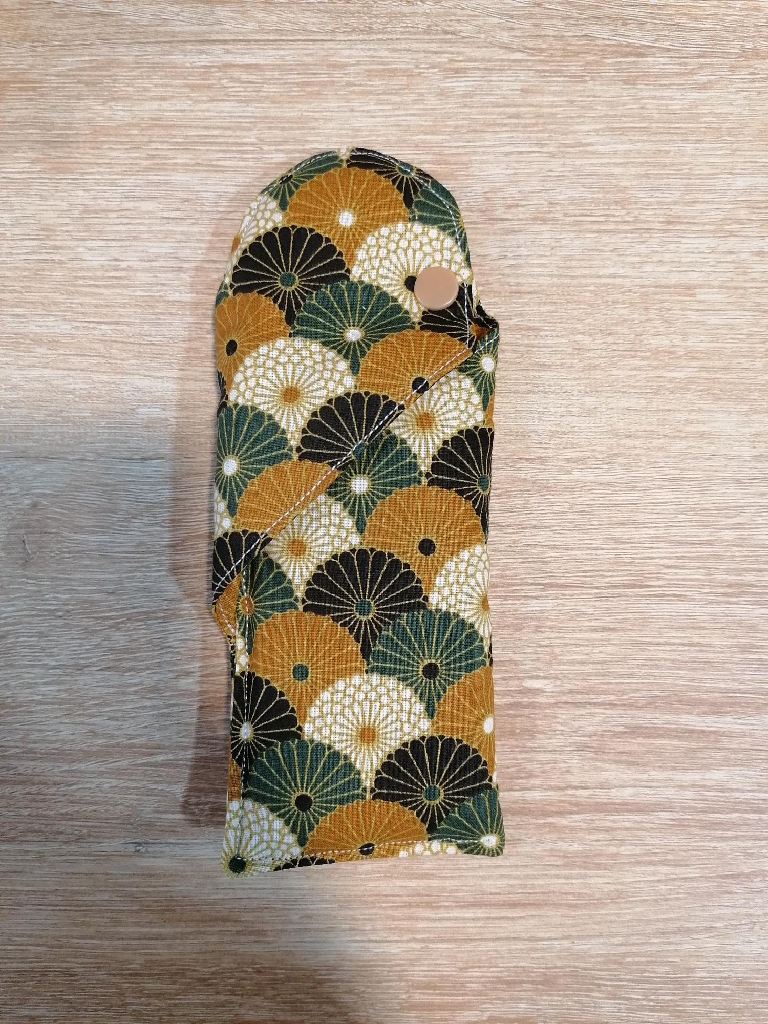 Etui à lunettes avec rembourrage – Motif : Eventail marron vert