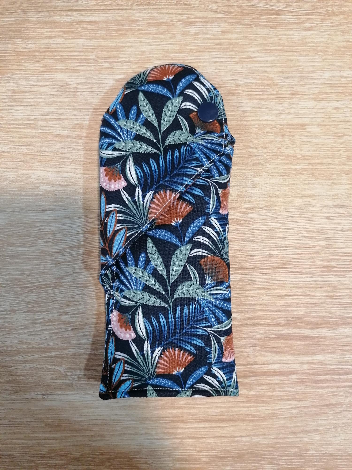 Etui à lunettes avec rembourrage – Motif : Feuillages bleu
