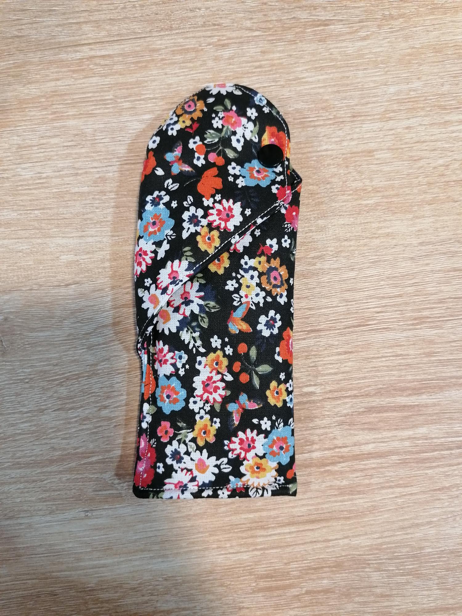 Etui à lunettes avec rembourrage – Motif : Fleurs fond noir